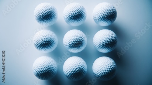 Fototapeta premium Six white golf balls neatly arranged in a perfect circle are displayed on a...
