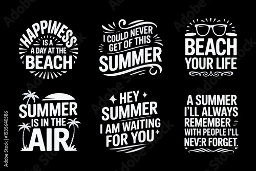 © Mdnobirul, Fototapeta premium Six White Summer Quotes on Black Background beach quotes