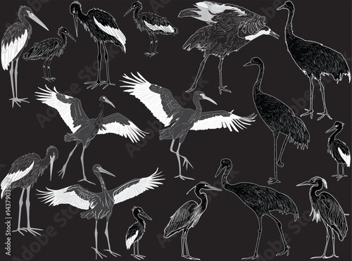 © Alexander Potapov, Fototapeta premium sixteen cranes on black