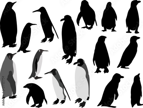 © Alexander Potapov, Naklejka premium sixteen penguins isolated on white