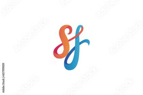 © Faiqotur, Fototapeta premium SJ logo with 3d design in blue and orange color gradient