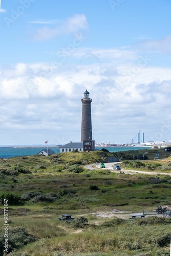© Joshrnz/Wirestock Creators, Fototapeta premium Skagen lighthouse standing proudly on a beach in Denmark.