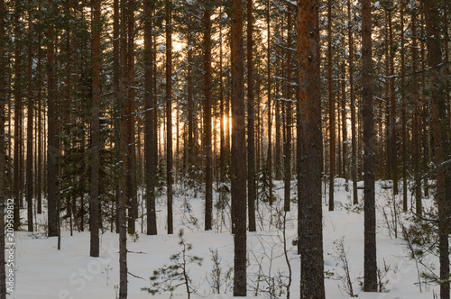 Obraz premium Skandinavien winter sunset forest
