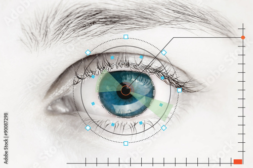 © triocean, Naklejka premium Skaner na niebieskim oku ludzkim