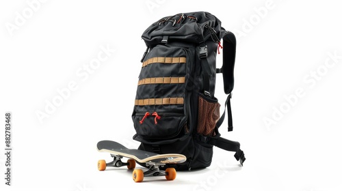 Naklejka premium Skateboard and Backpack Next to Each Other