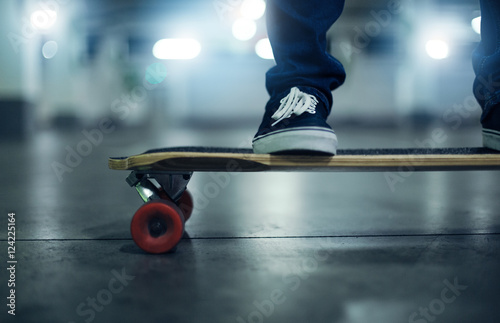© yossarian6, Fototapeta premium Skateboarder foot on longboard