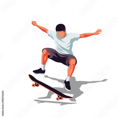 Fototapeta premium Skateboarder performing trick jump, dynamic action, vector illustration