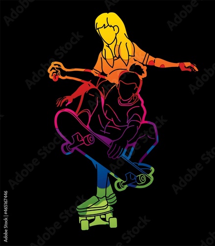 © sila5775, Fototapeta premium Skateboarder Playing Together Group of Skateboard Players Extreme Sport Action