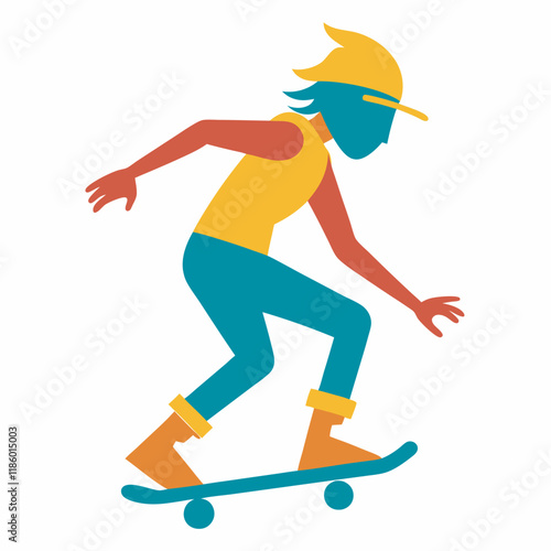 © ShirinSultana, Obraz premium Skateboarder Silhouette Retro Art on a isolated white background