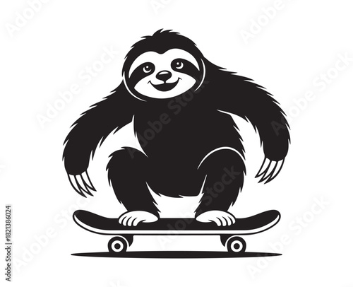 © Fayej, Naklejka premium Skateboarding Sloth Silhouette, Cute Sloth Riding Skateboard Vector.