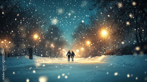 © Sidewaypics, Fototapeta premium Skating Under the Stars, Ice skating