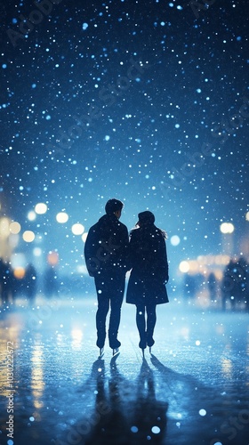 © Sidewaypics, Obraz premium Skating Under the Stars, Ice skating