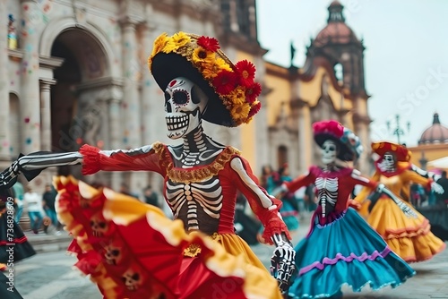 Obraz premium Skeleton Dancers in Mexicos Da de los Muertos Parade