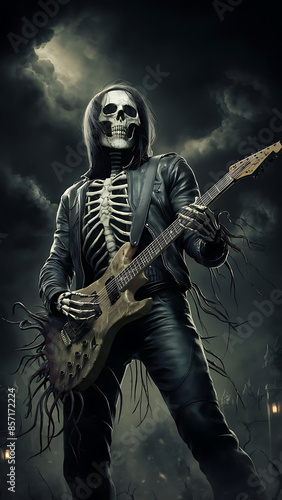 © Abida , Fototapeta premium skeleton holding guiter
