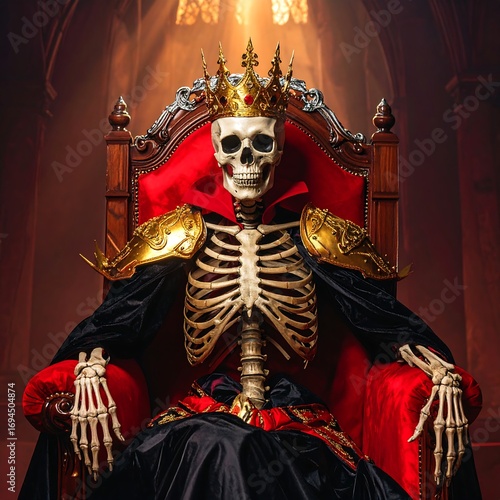 © Mendoan, Fototapeta premium Skeleton king on throne, regal pose, dark gothic