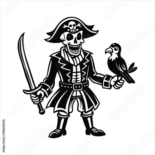 © Gearspace, Fototapeta premium Skeleton pirate with sword and parrot