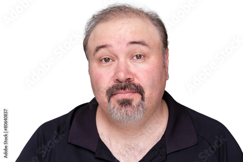 © Ozgur Coskun, Obraz premium Skeptical middle-aged man raising his eyebrows