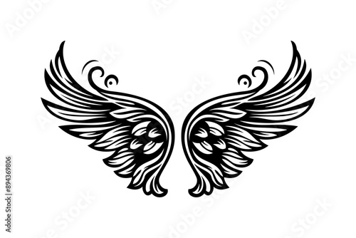 © Asyam Design, Fototapeta premium Sketch angel wings. Angel feather wing illustration.