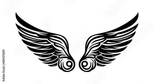 © Asyam Design, Fototapeta premium Sketch angel wings. Angel feather wing illustration.