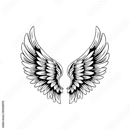 © Asyam Design, Obraz premium Sketch angel wings. Angel feather wing. Vector illustration.