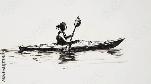 © Joyce, Naklejka premium Sketch drawing of a female kayaking in water