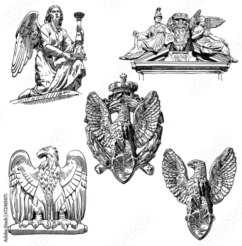 © Kara-Kotsya, Obraz premium sketch drawing winged element angel and eagle