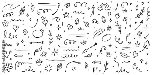 Obraz premium Sketch element line set. Abstract nature element decoration graphic icon set....