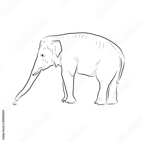 © yik2007, Obraz premium Sketch. Elephant gets something by trunk.