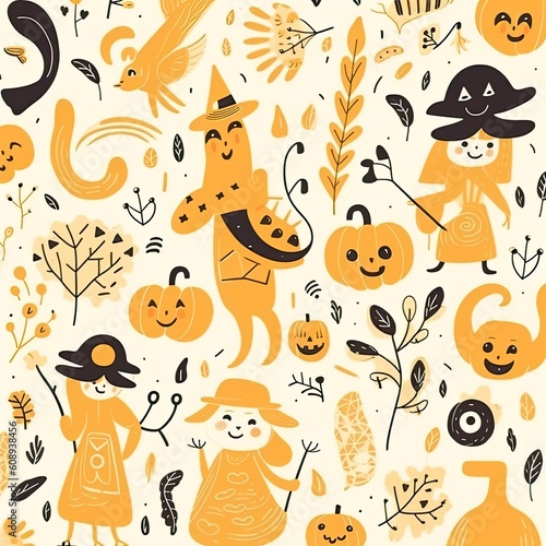 © Gelpi, Fototapeta premium Sketch Halloween seamless pattern with brown and orange colors. Generative AI