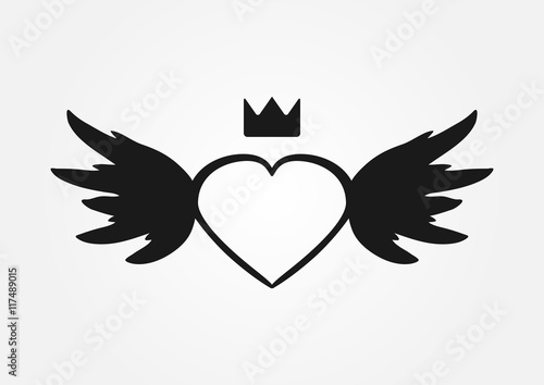 © Anne Punch, Fototapeta premium Sketch heart, wings, crown. Abstract silhouette.
