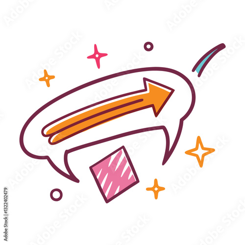 © Irin, Naklejka premium Sketch highlight elements, underline, and arrow with a brush stroke. Emphasis lines, speech bubble doodles, sparkle icons. Vector illustration