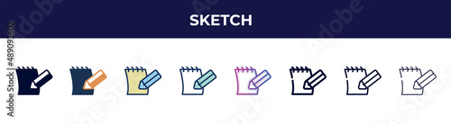 Fototapeta premium sketch icon in 8 styles. line, filled, glyph, thin outline, colorful, stroke and gradient styles, sketch vector sign. symbol, logo illustration. different style icons set.
