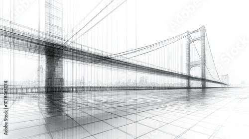 © Emile, Naklejka premium sketch lines of suspension bridge 3d rendering