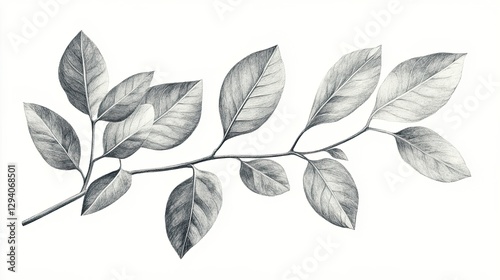 Fototapeta premium Sketch of a botanical branch with detailed leaves in an elegant black and...