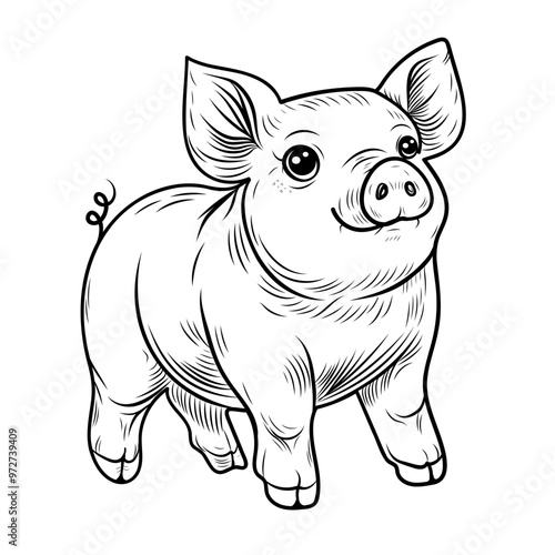 Fototapeta premium Sketch of a pig. Standing. In line art style. Vintage illustration. Element...