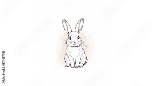 © The 2R Artificiality, Obraz premium Sketch of a rabbit in line art style, suitable for children's activity sheets