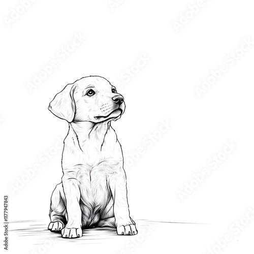 Fototapeta premium Sketch of a sitting Labrador puppy on white background with copy space