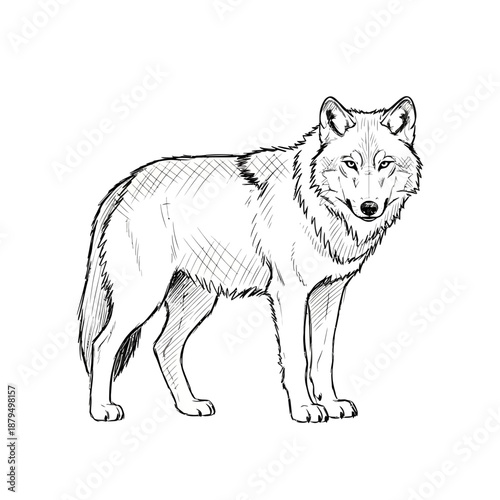 © Sukma, Fototapeta premium Sketch of a standing wolf on white background