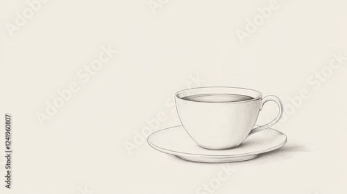 Obraz premium Sketch of coffee cup on saucer, simple background, for menu design