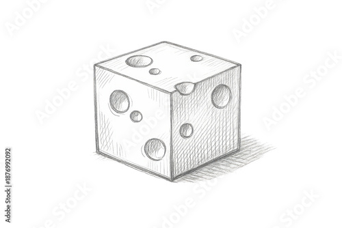 © whitestorm, Obraz premium Sketch of Cube with Holes on transparent background, cheese-like shape.