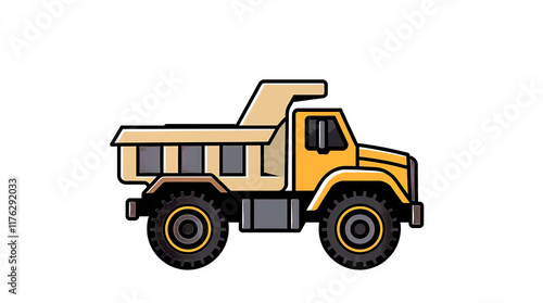 Fototapeta premium Sketch of dump truck, side view technical drawing of industrial construction vehicle in minimalist style