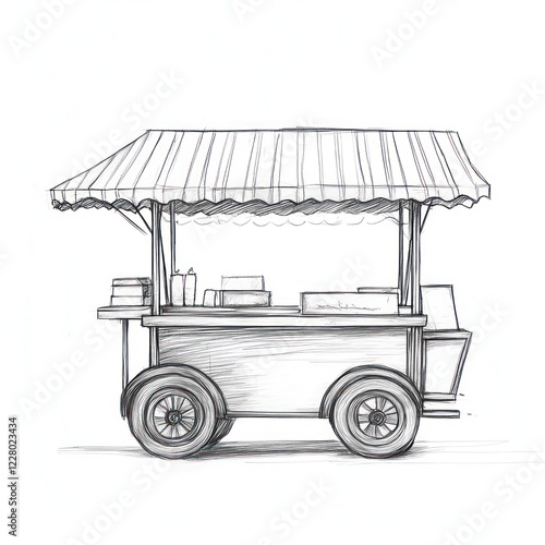 Obraz premium Sketch of food cart, street market, selling snacks
