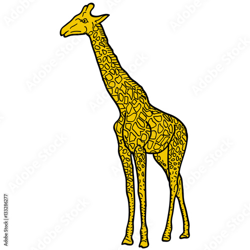 © Arrows, Obraz premium Sketch of high African giraffe on a white background. Vector illustration