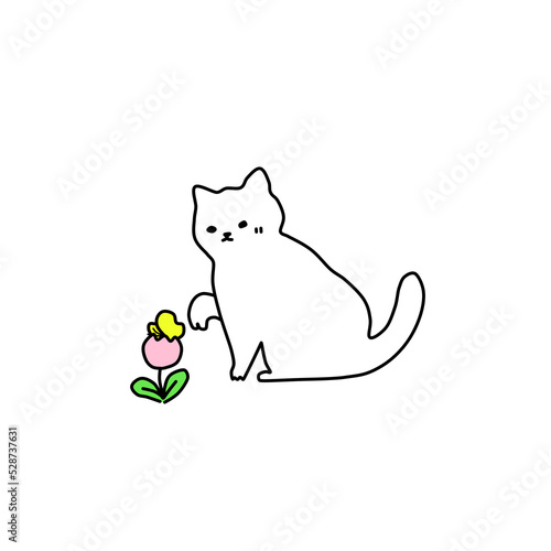 © Kim, Naklejka premium sketch of kitten with bouquet of flowers
