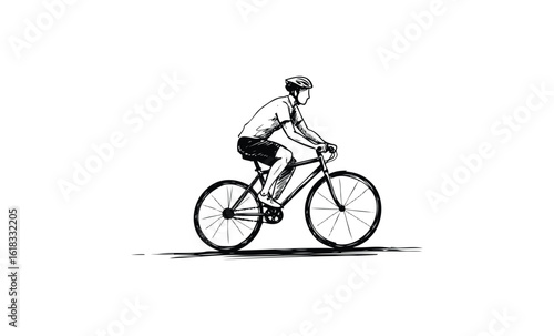 © Mr. Stocker, Fototapeta premium Sketch of male cycling on bicycle with helmet. Vector retro hand drawn illustration