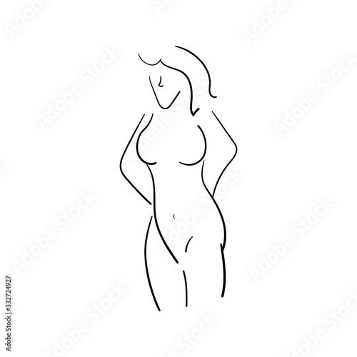 © Alex Captain, Fototapeta premium Sketch outline of a naked woman is drawn by hand. Isolated vector illustrations.