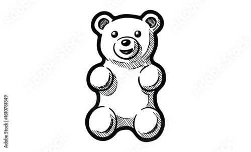 © Mr. Stocker, Naklejka premium Sketched teddy bear illustration with detailed shading and playful expression. Vector retro hand drawn illustration