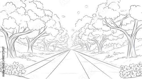 Naklejka premium Sketchy Road Through Trees, Useable as Background Image