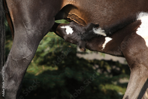 © Zuzana Tillerova, Obraz premium Skewbald foal drinking