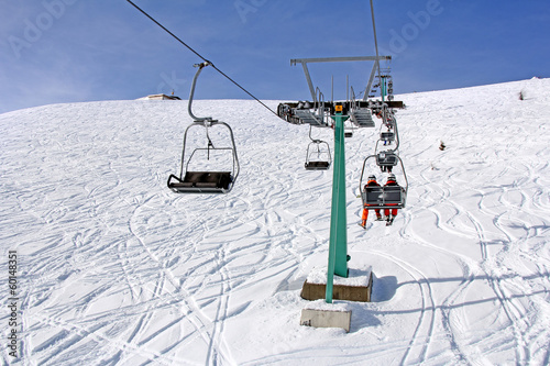 Obraz premium Ski lift and skiers